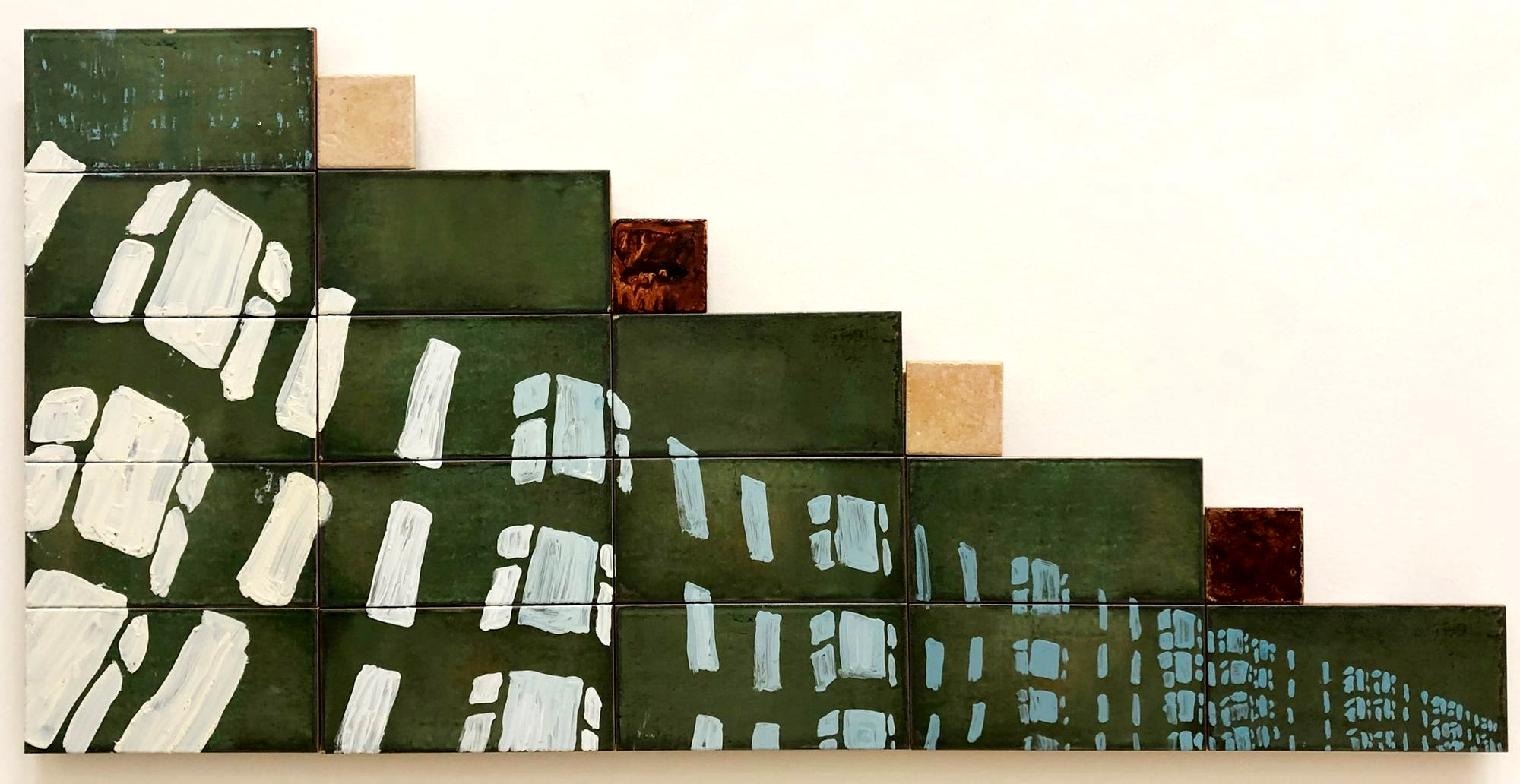 'Job interview', 2024, Oil on found tiles, 50cm x 100cm